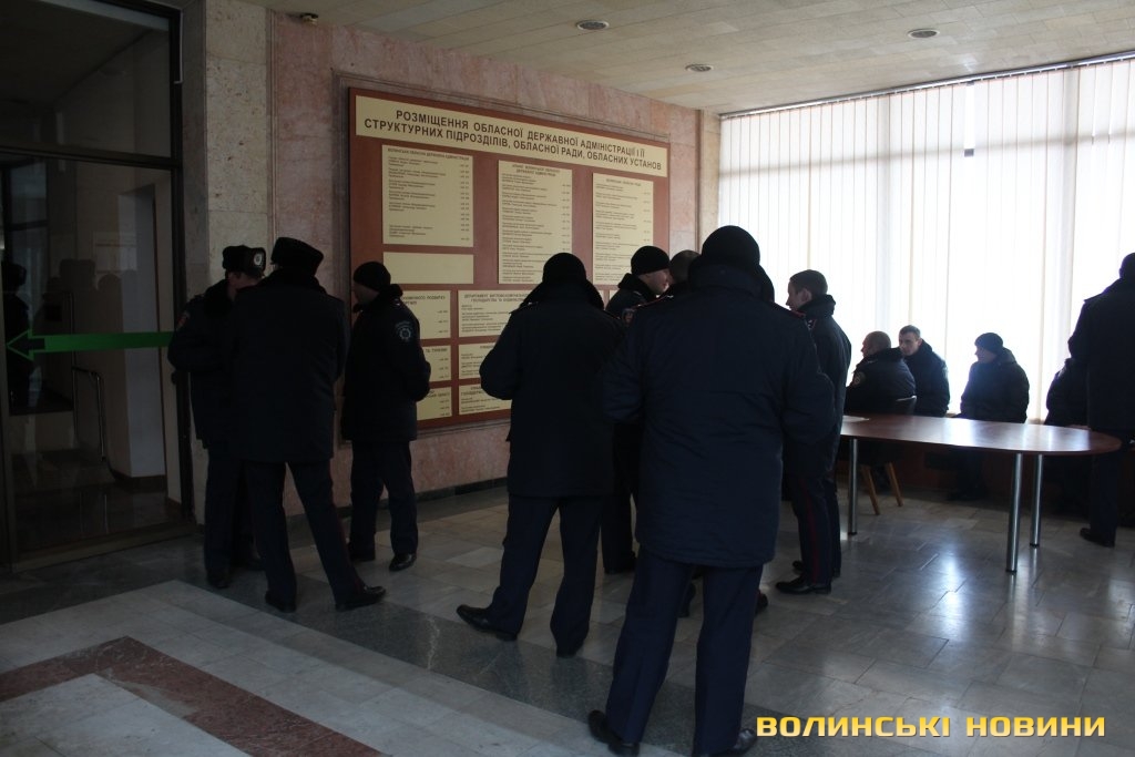 Під обласною адміністрацією зібралось близько 20 людей. Окрім того, дуже багато міліції , - про це йдеться на сторінці луцького Євромайдану в соціальній мережі.