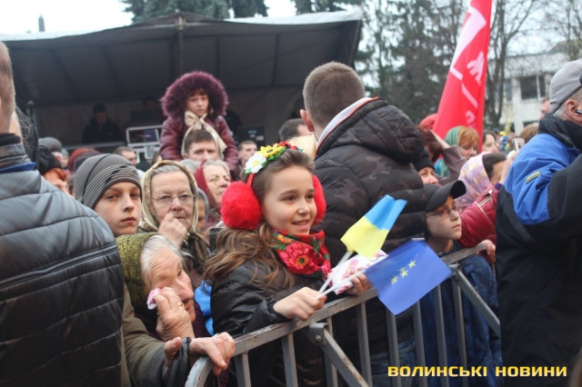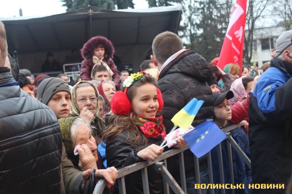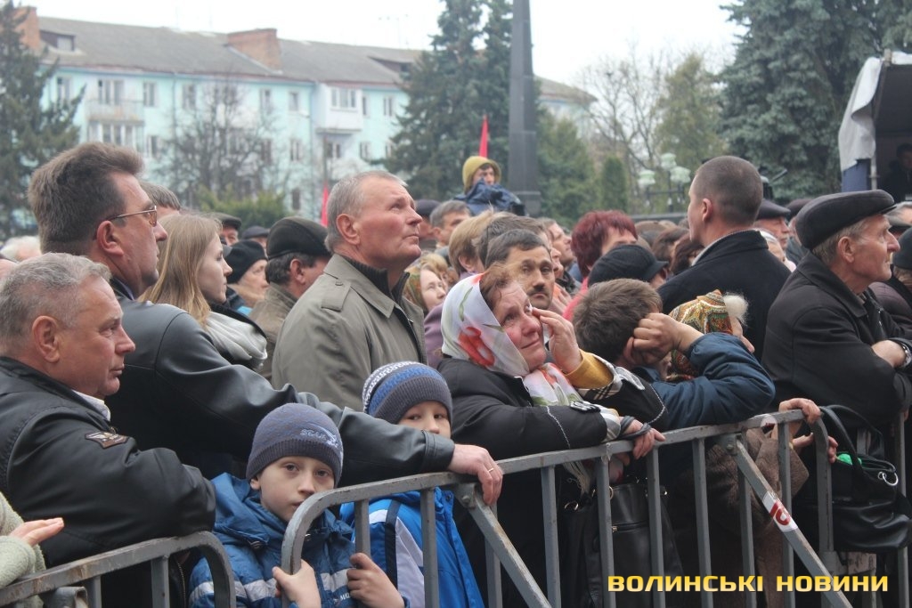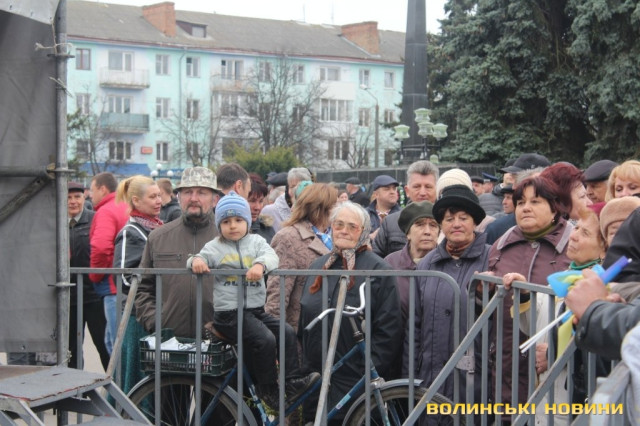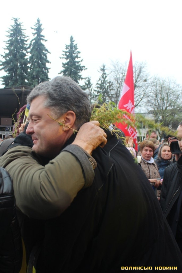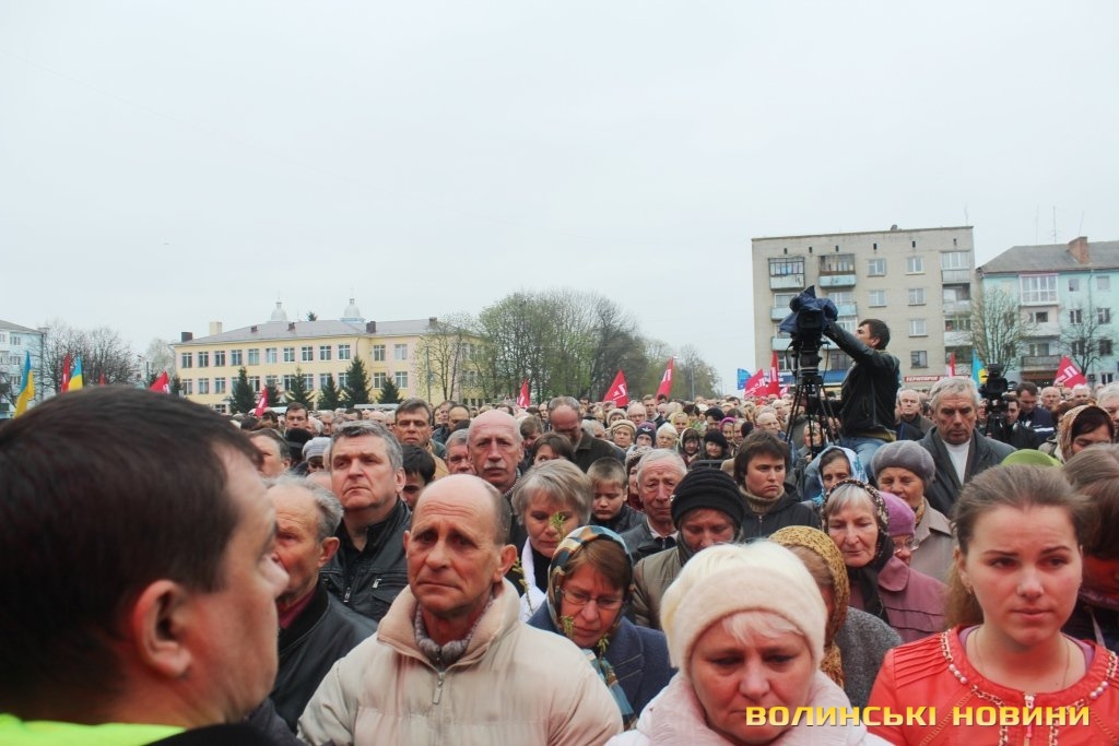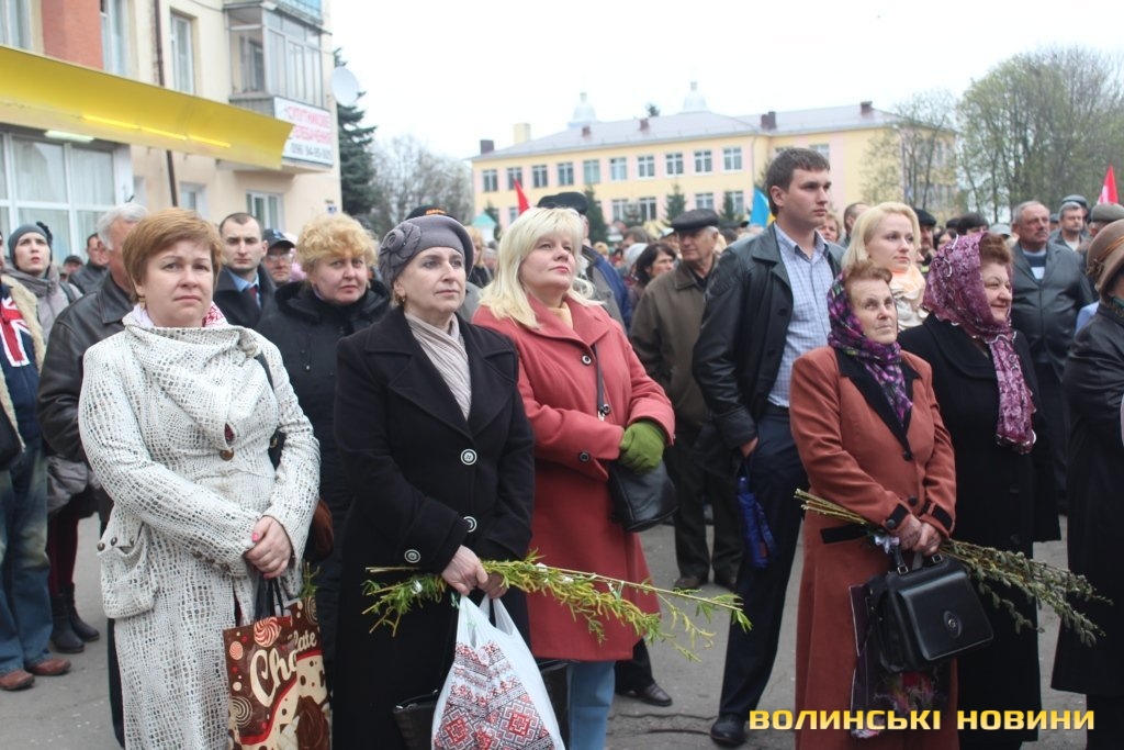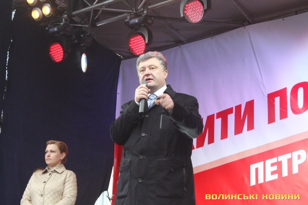 Тисячі мешканців Володимира-Волинського зібралися у Вербну Неділю, аби поспілкуватися з кандидатом на пост Президента України Петром Порошенком. Політик наголосив, що нині найважливішим є забезпечення єдності України та українців, адже жодна влада не зможе втриматися, коли народ демонструє свою рішучу волю. З його слів, головним завданням, яке стоїть перед українцями, є збереження єдності та соборності держави. Так, він повідомив про те, що триває антитерористична операція проти сепаратистів у Слов’янську, під час якої вже загинув боєць підрозділу «Альфа». Пам'ять загиблого на зустрічі вшанували хвилиною мовчання.