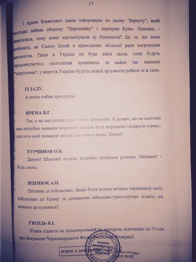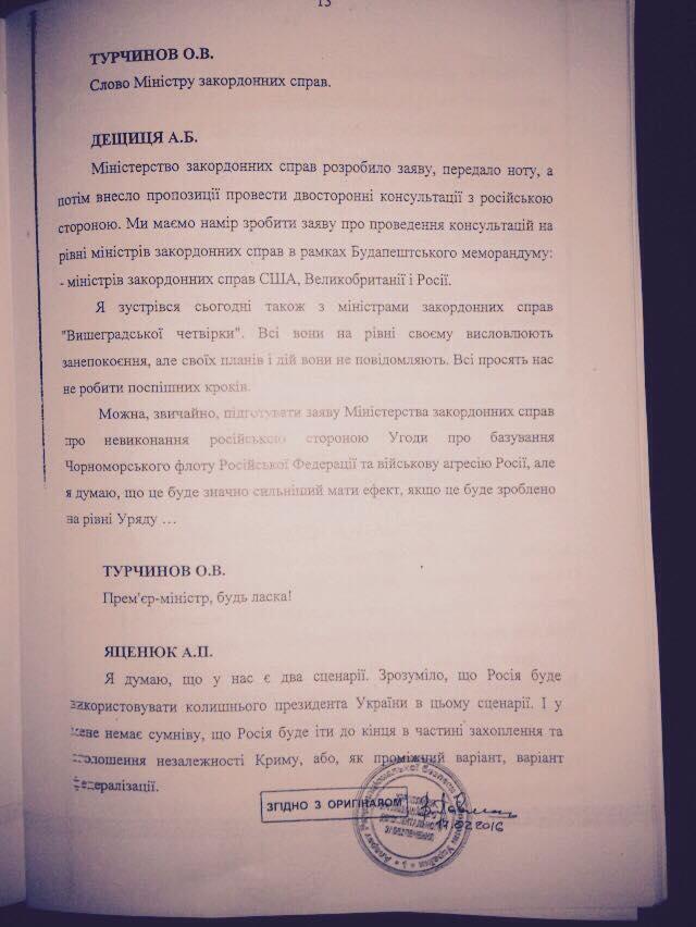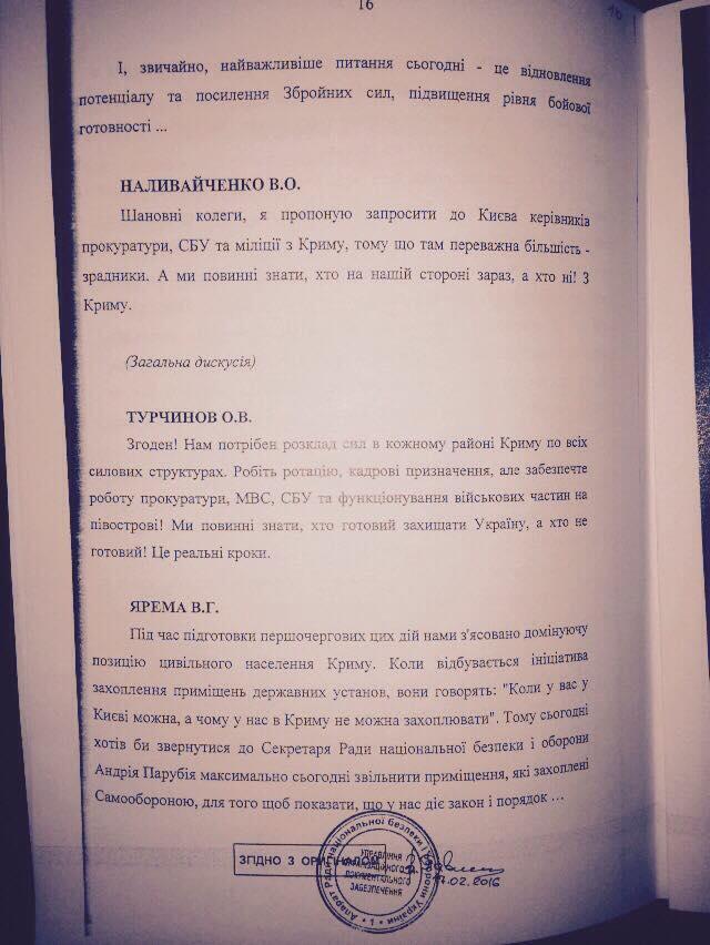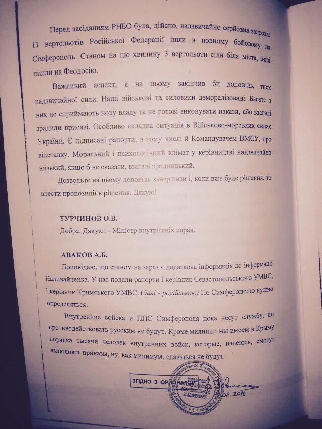Повна стенограма засідання РНБО під час анексії Криму. Документ