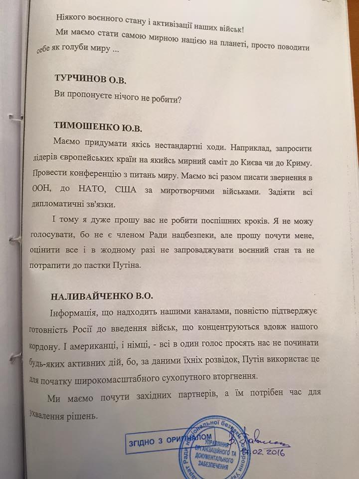 Стала доступною для громадськості стенограма засідання РНБО від 28.02.14 р. після активізації російських військ у Криму, на якому вирішувалося питання введення воєнного стану в Україні.