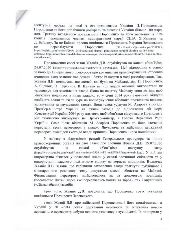 Він додав, що серед осіб, які можуть бути причетні до скоєння злочину: екснардеп Давид Жванія, екстимчасовий виконувач обов’язків президент Олександр Турчинов, колишній прем’єр-міністр Арсеній Яценюк, ексспікер парламенту Андрій Парубій і колишній міністр закордонних справ Павло Клімкін.