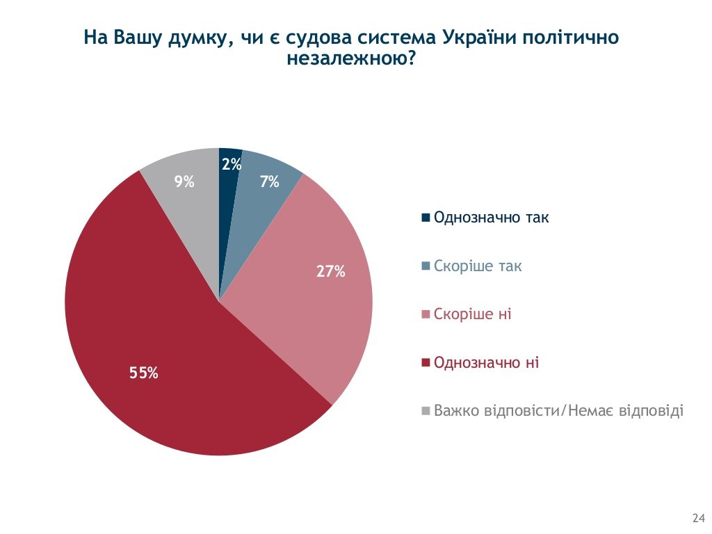 Реформовану судову систему вважають політично незалежною лише 2% українців