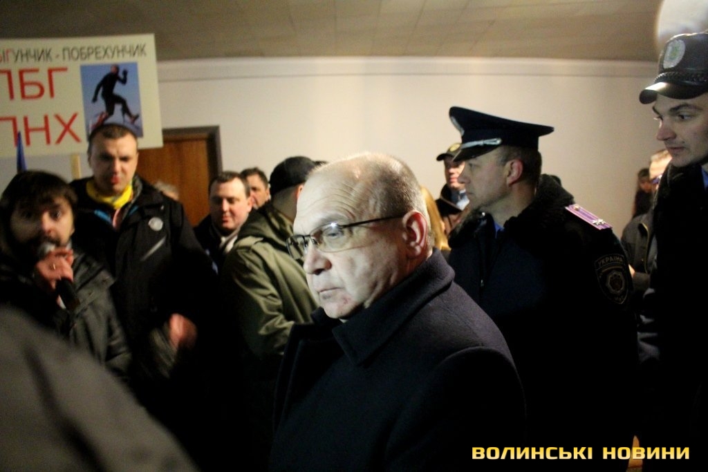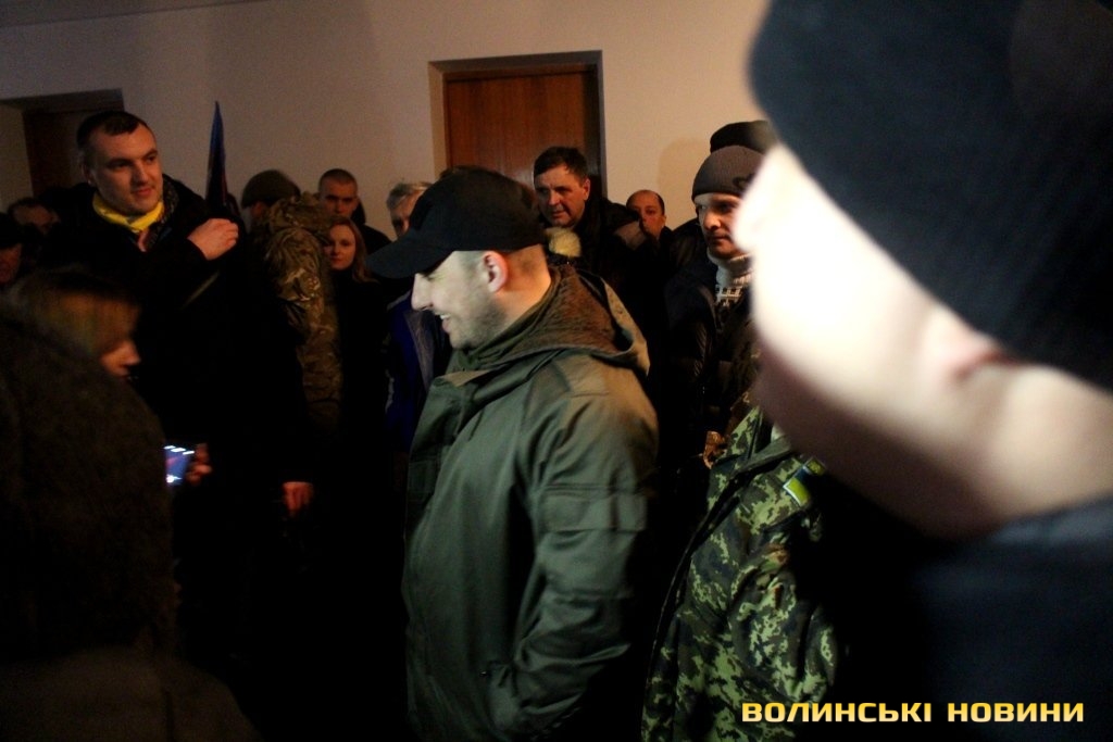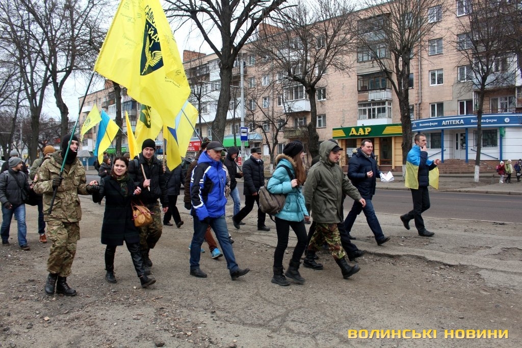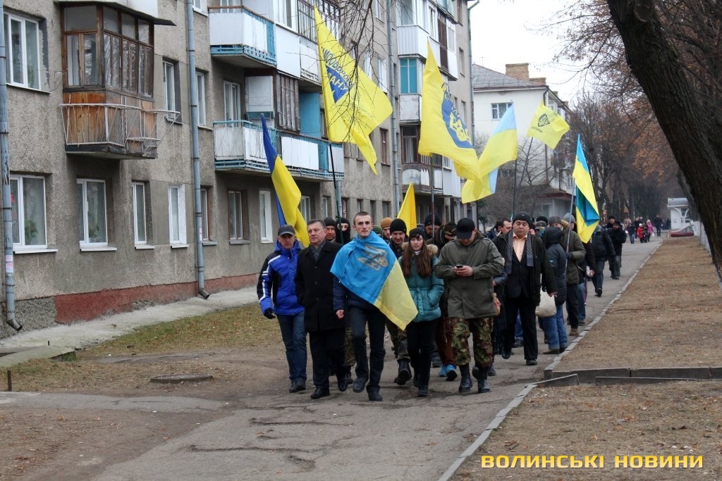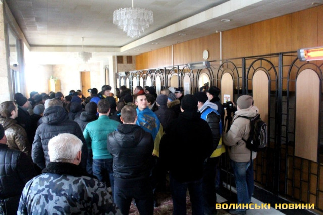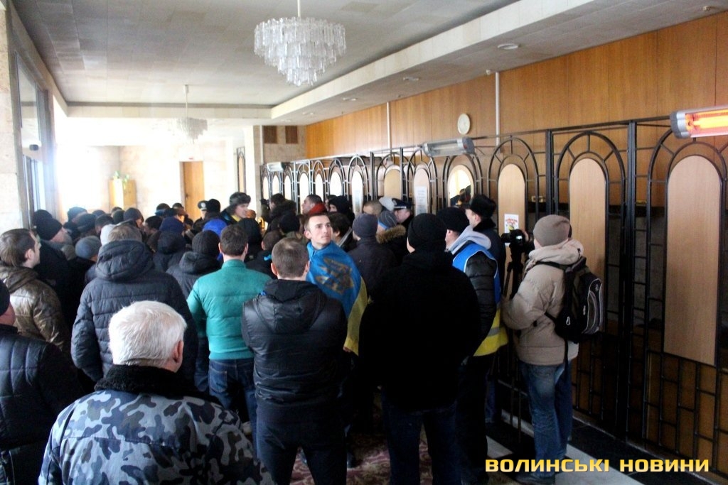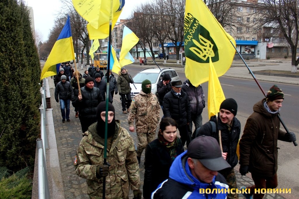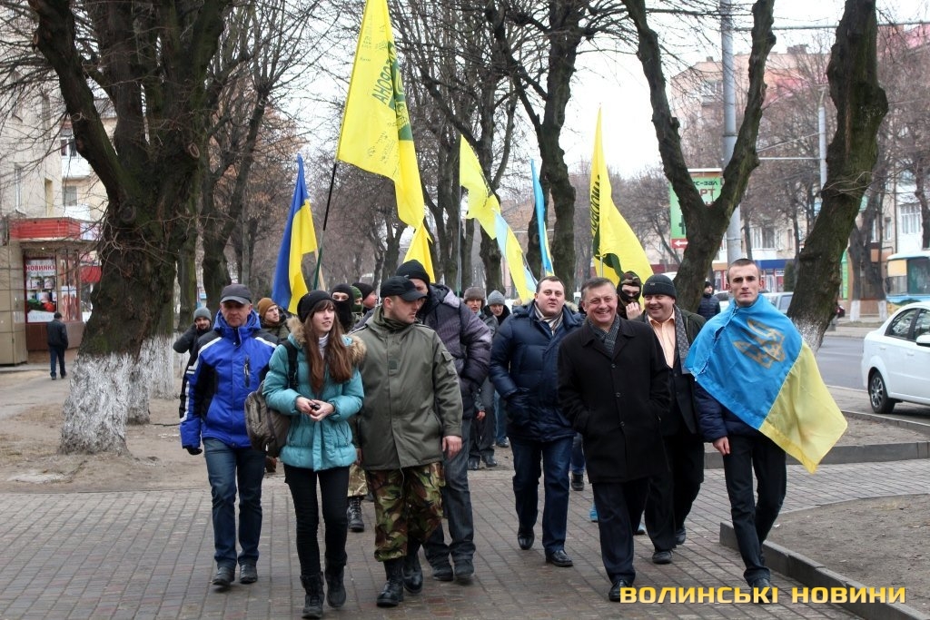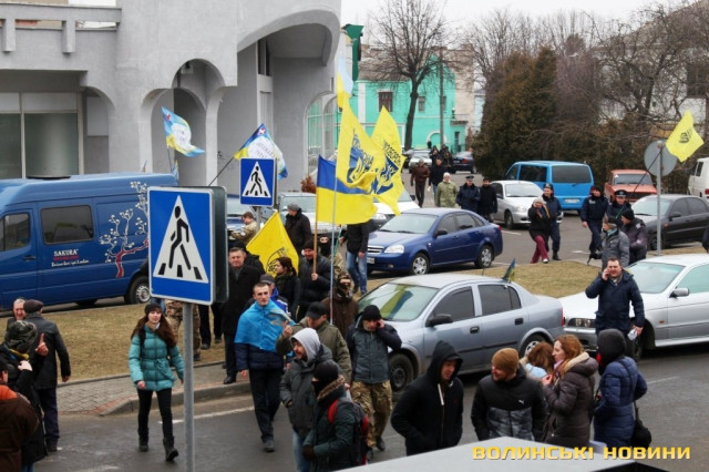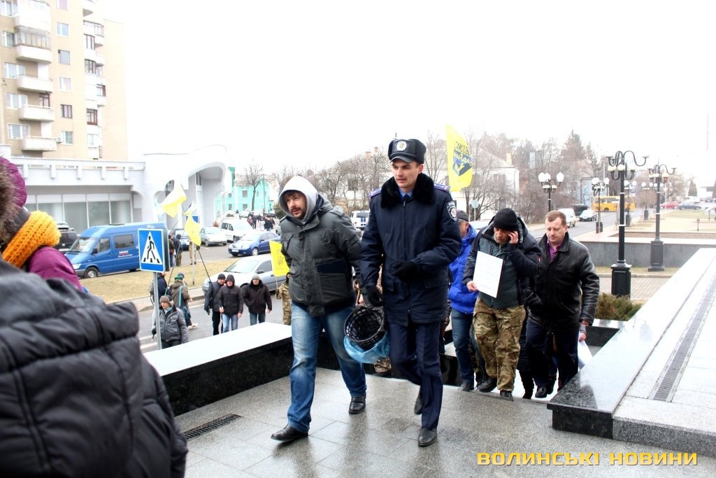 Декілька десятків активістів пройшли пішою ходою проспектом Волі до будівлі облради. На місці не обійшлося без конфлікту та взаємних звинувачень з представниками інших громадських структур (йдеться про «Автомайдан Волині» Сергія Похи, представники якого чекали поблизу входу).