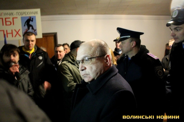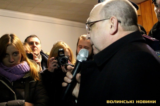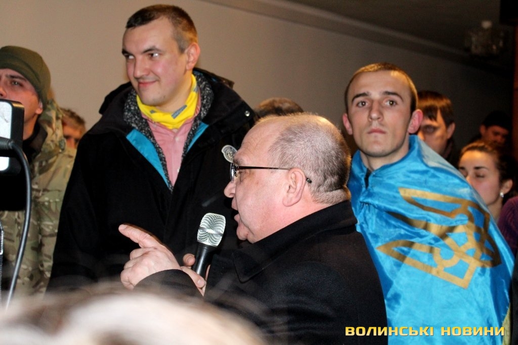 Михайло Шелеп розповів, що відомо про те, що в ОДА існувала раніше структура, що стежила за діями активістів, проплачувала матеріали в ЗМІ, і запитав Володимира Гунчика, чи покараний хтось із чиновників за це. На його думку, голова ОДА може ініціювати серед правоохоронців вирішення цього питання. Звернення, у якому перелічені питання до голови облдержадміністрації, передали йому особисто. Зі слів активістів, змін у владі на Волині не помітно.Володимир Гунчик відповів, що влада – це народ, ті люди, яким надали право виконувати певні функції. Якщо ці функції йдуть в розріз із законодавством, влада, мовляв, звертається до народу за сприянням. Він зауважив, що учасники акції хочуть його принизити, але це, мовляв, не вдасться та запевнив, що не ховається від громади у кабінетах.