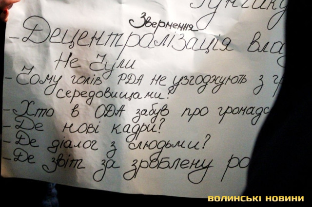 Узгодження голів РДА з громадою, діалог з людьми, нові кадри у владі та звіт за зроблену роботу: вимоги та зауваження до голови Волинської облдержадміністрації висунули учасники акції «Непокаране зло зростає».