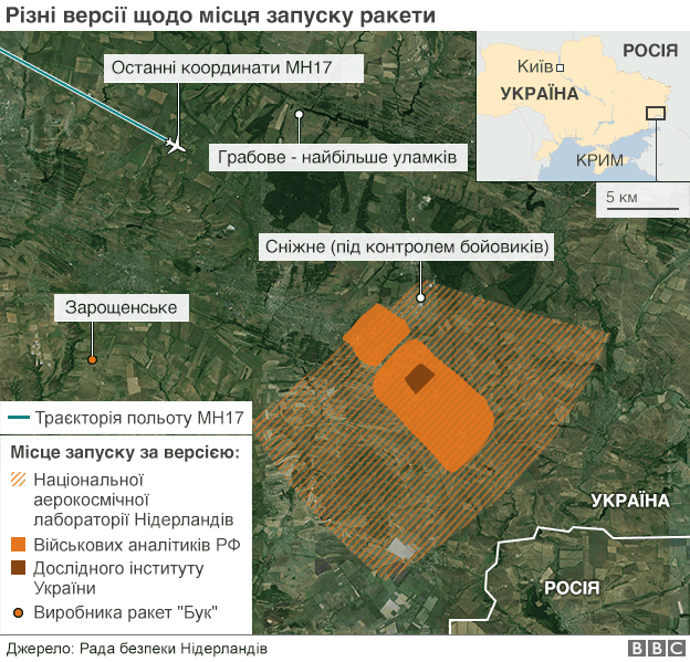 Україна та західні держави схильні вважати, що лайнер збили ракетою, запущеною системою "Бук" з території, яку на той момент контролювали бойовики так званої "ДНР".