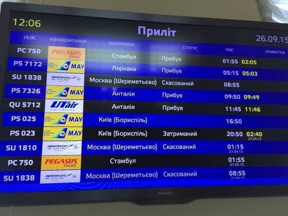 Зокрема, як зазначається на електронних табло аеропортів, сьогодні й завтра три рейси скасовані до Харкова, ще один – до Одеси.