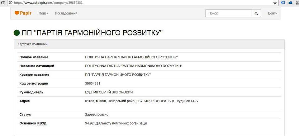 Раніше за цим кодом ЄДРПОУ числилась "Партія гармонійного розвитку"!