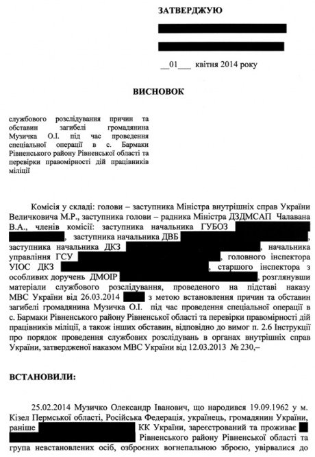 Висновок службового розслідування, датований 1 квітня, оприлюднено на сайті Міністерства внутрішніх справ у середу, 2 квітня.