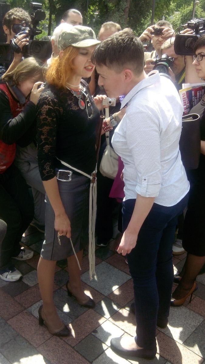 Вислухавши свою "опонентку", Савченко відповіла: "Ти все сказала? Тобі полегшало?", Розвернулася і пішла.