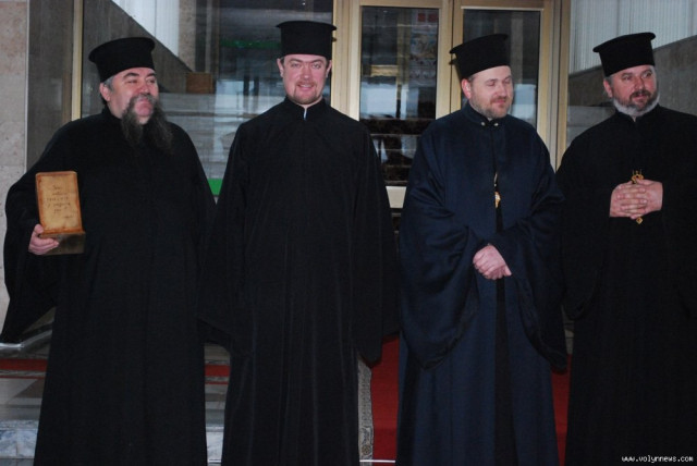 О 12.00 в «білий дім» завітали священики Свято-Троїцького кафедрального собору та архієпископ Луцький та Волинський УПЦ КП Михаїл.