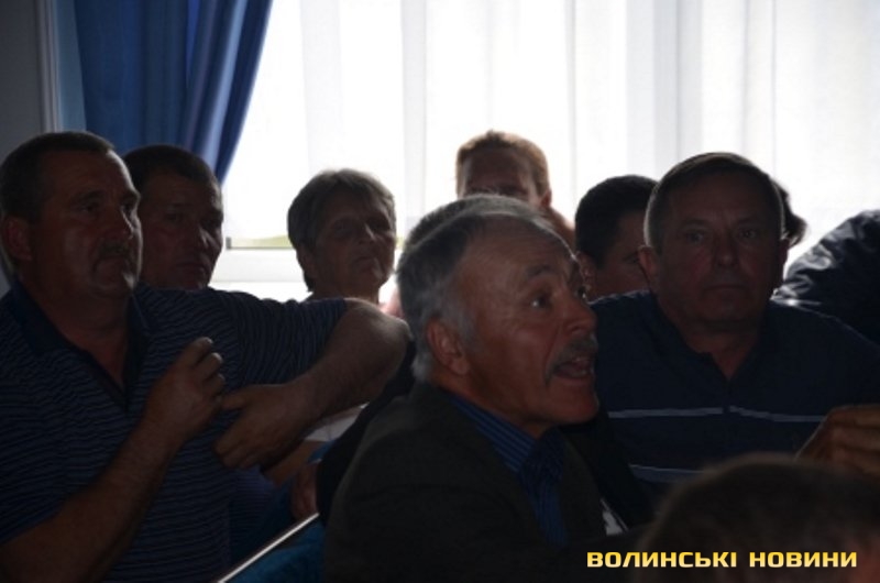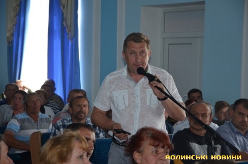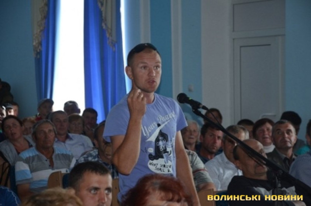 Опісля до людей звернувся голова Любешівськой райдержадміністрації Олег Кух. Він зачитав громаді відповідь з Міністерства закордонних справ щодо демаркації кордону. Люди слухають, але, схоже, нічого нового для себе не чують.Виникає гул. Люди по черзі підходять до мікрофону у залі. Говорять, що кордон з Білорусією зовсім не там, про що пишуть чиновники.На сцені – знову Семенченко. Він «ловить» настрій людей і підтримує їхнє обурення.