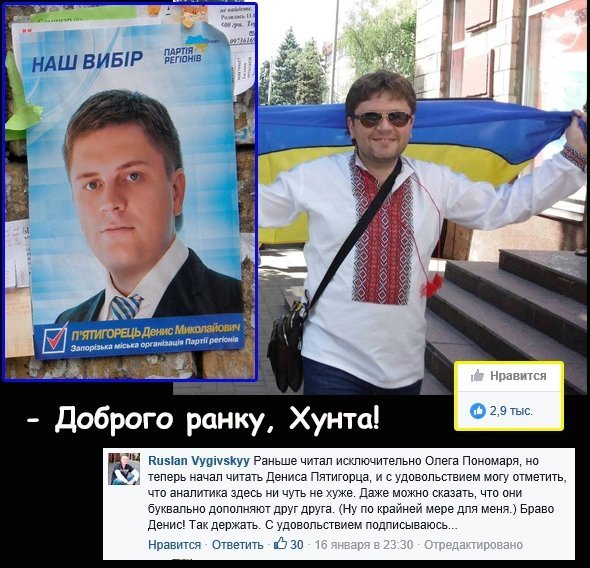Причина такої критики – відверто пропагандистські пости екс-регіонала, який встиг вчасно перефарбуватись під час подій Майдану. Адже, зі слів автора, П’ятигорець часто береться висвітлювати теми, в яких просто некомпетентний.