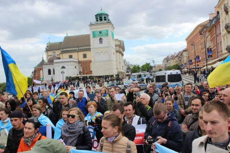 Марш солідарності у столиці Польщі зібрав більше двохсот людей. Окрім власне, українців, підтримати братній народ прийшли не тільки поляки, але й чимало білорусів. Також пліч-о-пліч столицею Польщі йшли і кримські татари, які сьогодні відзначають річницю переселення.