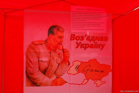 Нагадаємо, з 5 квітня на Театральному майдані Луцька був встановлений червоний намет активістів-комсомольців ГО «Відродження», де збирали кошти на відновлення пам’ятника Сталіну у Запоріжжі.