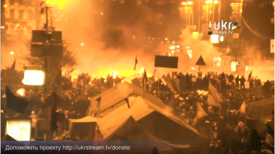 20:00 Міліція почала штурм Майдану. У хід ідуть водомети, феєрверки та димові гранати.