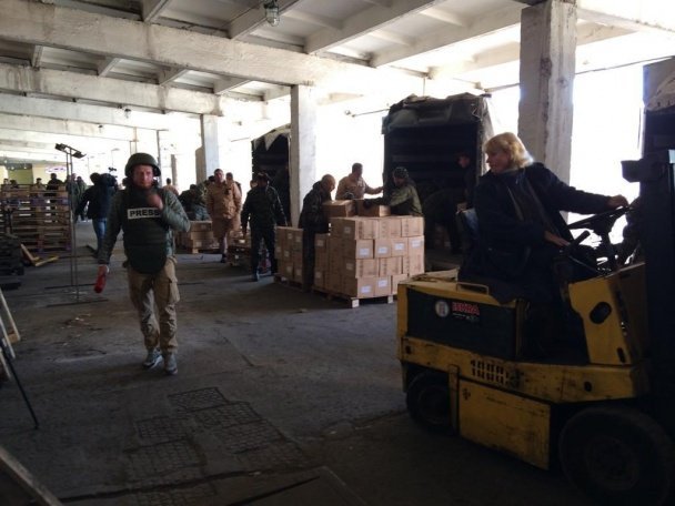 Як повідомляє ТСН, у соцмережах уже з'явилися фото, як конвой їде по Донецьку, а потім на складах розвантажують коробки. На них написано, що всередині - ніби скумбрія. Про те, що насправді привезли росіяни, можна тільки здогадуватися. До того ж увесь "гуманітарний" вантаж росіяни передають не мирним жителям, а своїм найманцям.