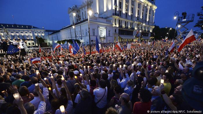 Протести в Польщі почалися ще 15 липня, коли кілька сотень людей вийшли до президентського палацу у Варшаві на акцію протесту проти судової реформи. За даними поліції, в цей день було затримано понад 30 осіб.