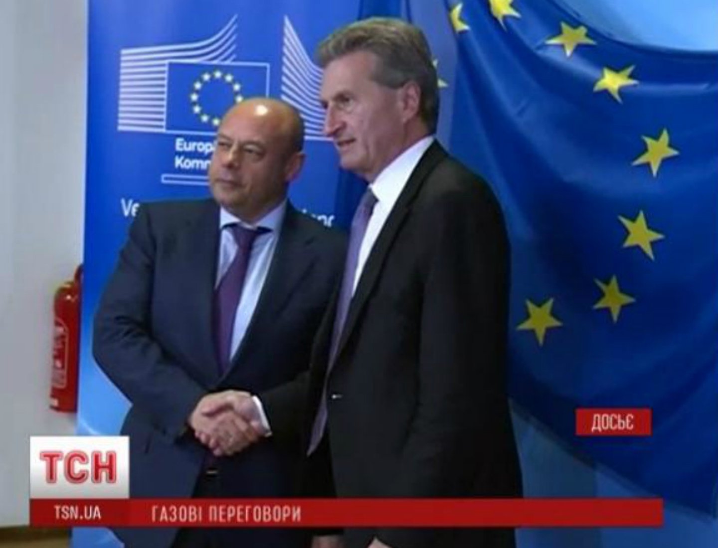 Зранку єврокомісар Гюнтер Еттінгер чекає в себе українського міністра палива і енергетики Юрія Продана і російського міністра Олександра Новака. Про це йдеться в сюжеті ТСН.