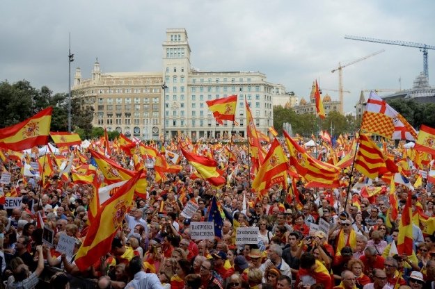 Десятки тисяч каталонців, які виступають за єдність з Іспанією, вийшли в п'ятницю на вулиці Барселони, щоб відзначити національне свято.