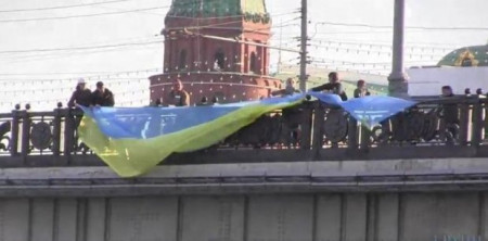 Під час спроби розгорнути десятиметровий прапор України на Великому Кам'яному мосту у Кремлі в Москві (РФ) затримали п'ятьох осіб, передає Газета.Ru з посиланням на «ОВД-Инфо».