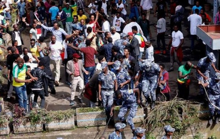 За попередніми оцінками, у демонстрації беруть участь 50 тисяч осіб, повідомляє The Guardian.