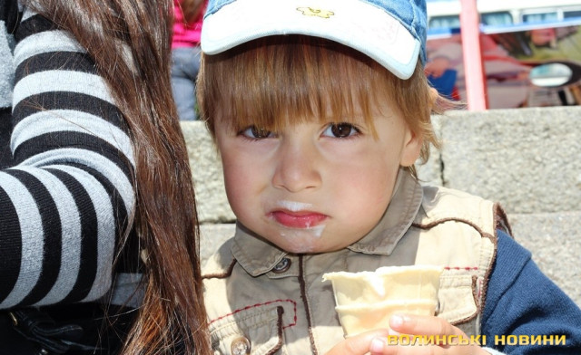 Да...фото хлопчика, який смакує морозиво не дуже веселе. Мабуть не дуже смакує, куплене за кошти мами. Свято морозива називається