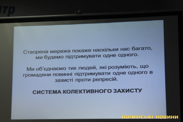 Як повідомив учасник громадсько-політичного об’єднання «Сила людей» Андрій Осіпов, це добра ідея, коли вся громада, об’єднавшись заради захисту людини, яка вільно виражає свої погляди, відстоює її права. З його слів, сьогодні активно використовується весь репресивний механізм держави і вона розпочала боротьбу з політичними опонентами, залучаючи міліціонерів, прокурорів, подекуди суддів. Так, в автомобілях автомайданівців знаходять пігулки, в офісах політичних діячів розташовують прослуховуючи апаратуру.