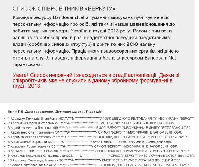 "Команда ресурсу Bandosam.Net з гуманних міркувань публікує не всю персональну інформацію про осіб, які так чи інакше мали стосунок до побиття мирних громадян України в грудні 2013 року", - йдеться в повідомленні.