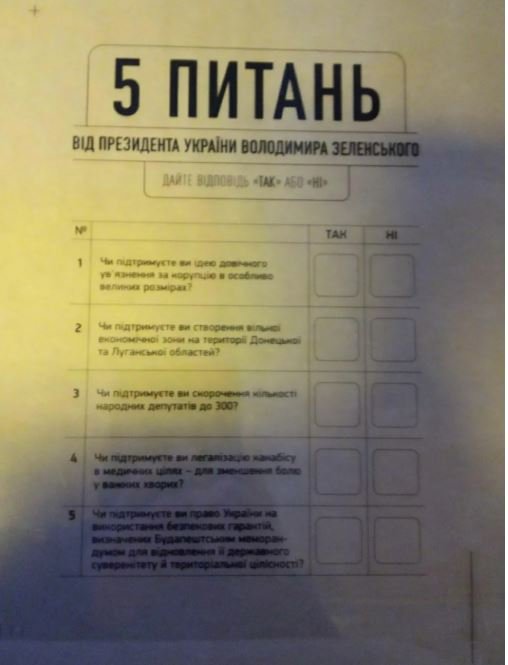 Як видно зі списку, першими в ньому йдуть уже озвучені главою держави питання, чи підтримують громадяни ідею довічного ув’язнення за корупцію в особливо великих розмірах, а також створення вільної економічної зони на Донбасі.