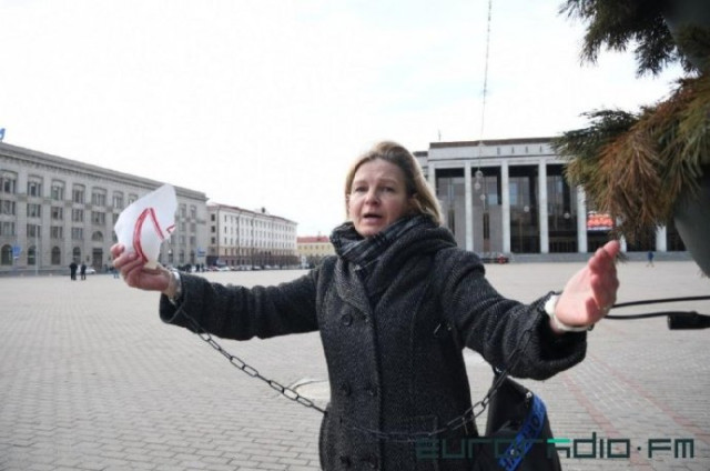 Також тут затримали опозиційну активістку Олену Товсту, яка прикувала себе ланцюгом до стовпа.