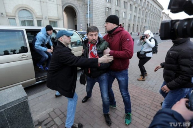 За його інформацією, на Жовтневій площі затримані виконуючий обов'язки голови Об'єднаної громадянської партії Микола Козлов і співголова партії "Білоруська християнська демократія" Віталій Римашевський. Лідерів правоцентристської коаліції затримали прямо на очах журналістів.