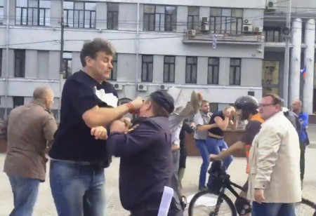 Згідно із заявами очевидців, проукраїнських мітингарів атакували активісти прокремлівських рухів НСД та СЕРБ.