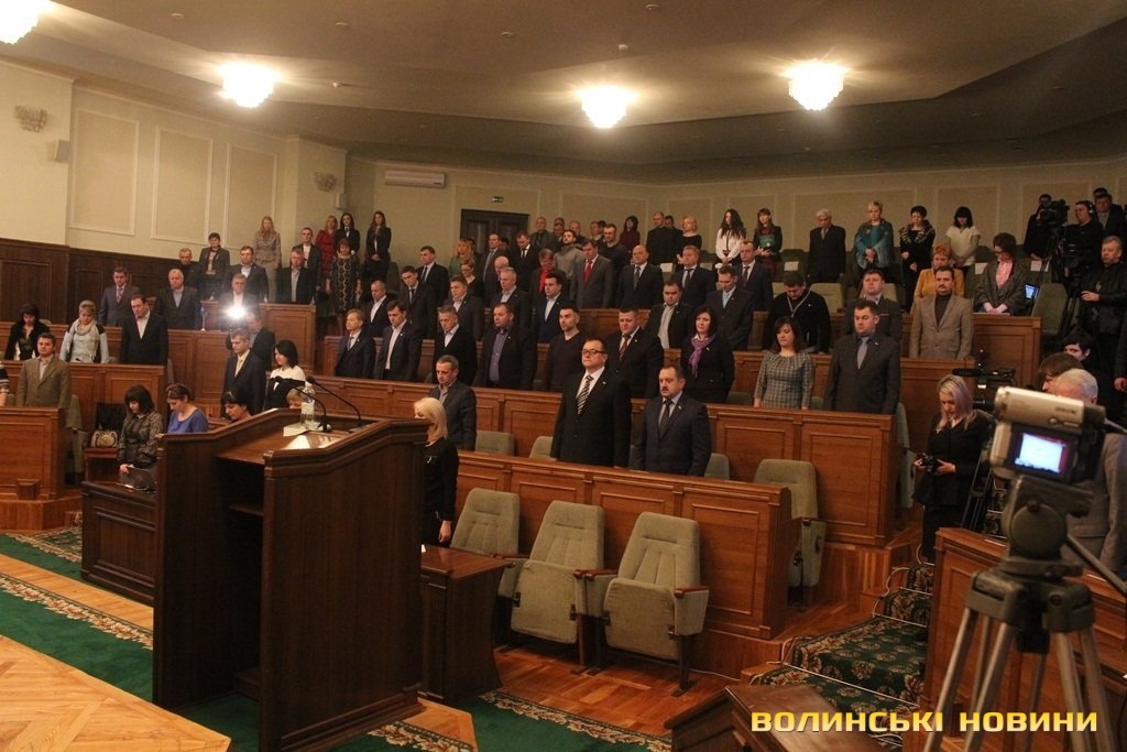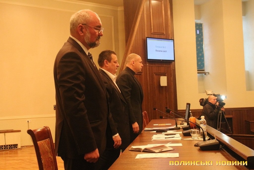 Так, новообраний голова органу місцевого самоврядування Ігор Палиця закликав своїх колег піднятися з власних місць і схилити голови, аби пом’янути тих волинян, що полягли у горнилі війни.Тож, сесійне засідання почалось із доволі сумної ноти – пісні-реквієма.