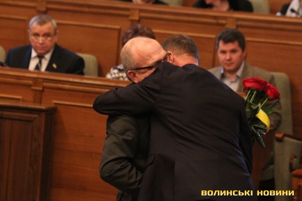Опісля губернатор Волинської області Володимир Гунчик та Ігор Палиця привітали з днем народження депутата облради Валерія Савича та вручили йому квіти.Окрім цього, Ігор Палиця привітав усіх присутніх із Днем місцевого самоврядування: