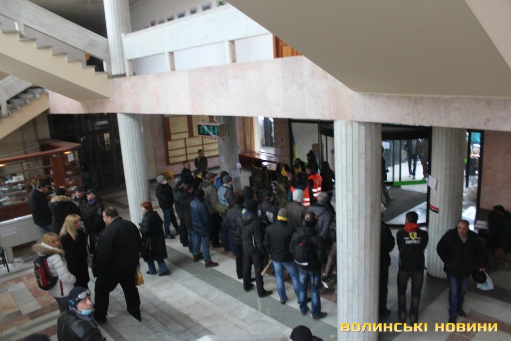 Нині приміщення поділили за принципом двох входів – через боковий вхід матимуть змогу заходити за перепустками працівники ОДА, які працюють на 4 та вищих поверхах. З ними існує домовленість про те, що вони не заходитимуть у приміщення 1-3 поверхів. Своєю чергою, самооборона не заходитиме на четвертий поверх і вище та користуватиметься центральним входом. Кабінети керівництва облдержадміністрації на другому поверсі опечатані і керівників на їхні робочі місця не впустять, оскільки громада вважає їх нелегітимними. Зі слів активіста Володимира Бондаря, наразі легітимну функцію виконуватимуть Народна рада та облрада. Вони здійснюватимуть політичне керівництво в області. На його думку, обласна рада повинна розірвати з облдержадміністрацією договір про оренду приміщень. Усі підрозділи, які здійснюють життєдіяльність області – управління та інші підрозділи функціонуватимуть надалі.