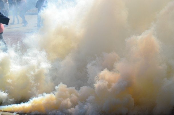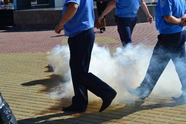 Під кінець акції невідомий кинув у натовп димову шашку. За словами Андрія Лева, вона влучила в нього. Це, як стверджує він, «чистої води провокація прихильників губернатора Клімчука».