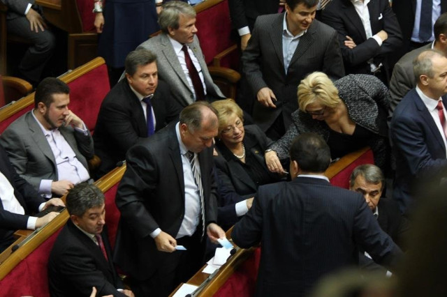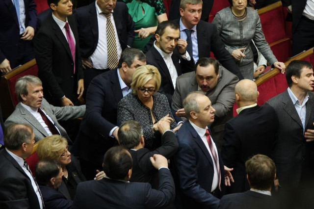 У протистоянні брали участь лідери фракцій, в тому числі, Олег Тягнибок та Арсеній Яценюк. Віталій Кличко не брав участі у протистоянні. Після оголошення перерви, близько 30 регіоналів залишаються біля трибуни. Зокрема, Ельбрус Тедеєв, який викидає сміття під трибуну, Владислав Лук’янов, Олег Царьов і Микола Левченко.