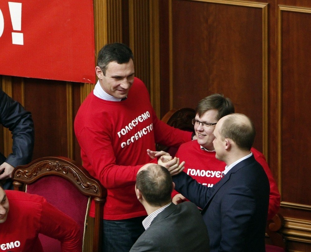 «Сьогодні ми відкриємо сесію і проголосуємо два питання - зміни до регламенту, які забезпечать контроль за персональним голосуванням та санкції за неособисте голосування, також парламент ухвалить заяву про євроінтеграційні прагнення України», - підкреслив Віталій Кличко. - «Лідери усіх фракцій пообіцяли, що ніяких спроб маніпуляцій під час голосування не буде. От і подивимося, чи працюватиме парламент далі. Оскільки без персонального голосування він працювати не повинен і не буде. І ми вже це довели», - зазначив лідер «УДАРу».