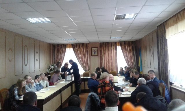 На початку сесії новообрана депутатка від УКРОПу Лариса Скиданюк виступила перед присутніми із зверненням про те, що в раді створено депутатську групу «За розвиток громади», до якої увійшло 14 депутатів.