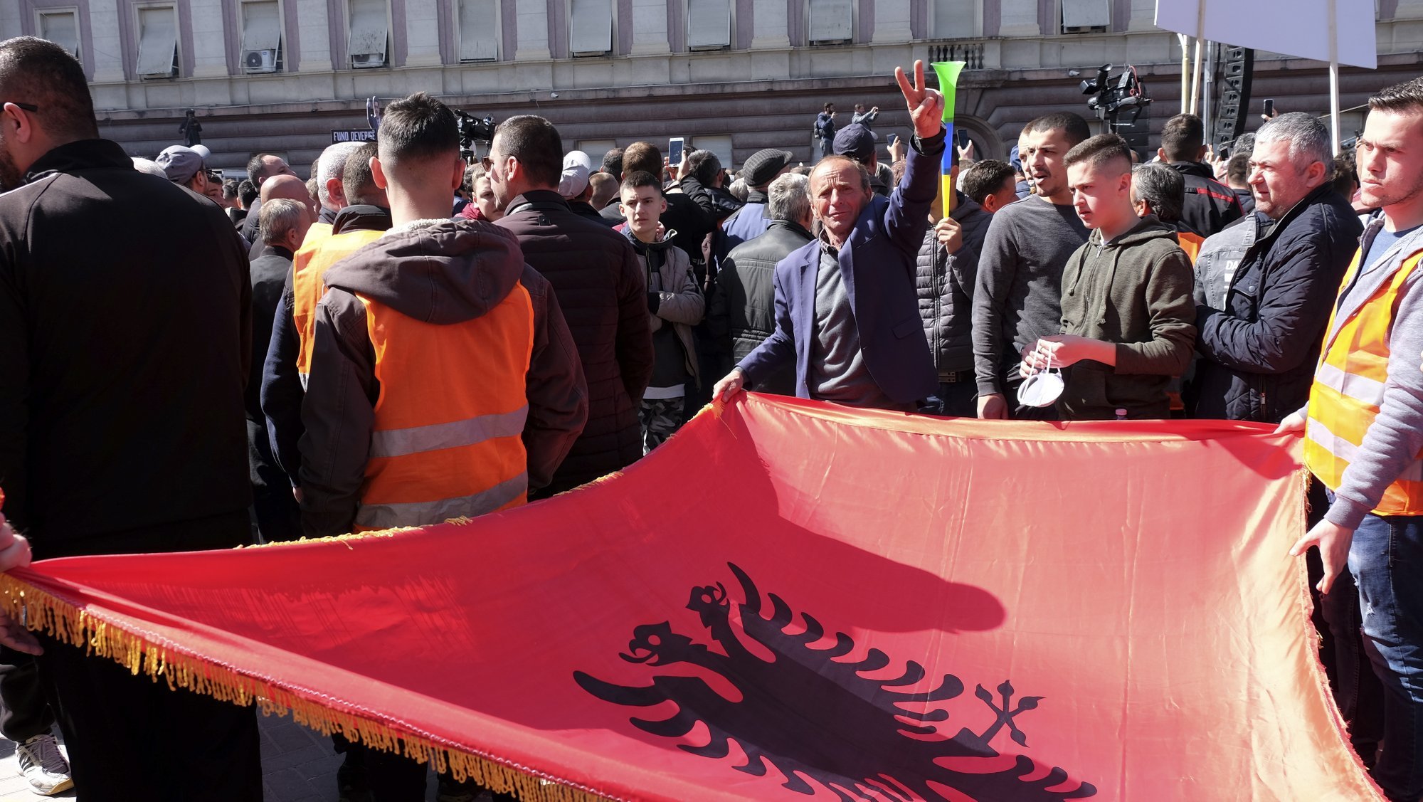 Протестувальники на чолі з лідером Демократичної партії Лулзімом Башeю прийшли до будівлі парламенту і спробували прорвати поліцейські кордони, кидаючи димові шашки та інші предмети в офіцерів.
