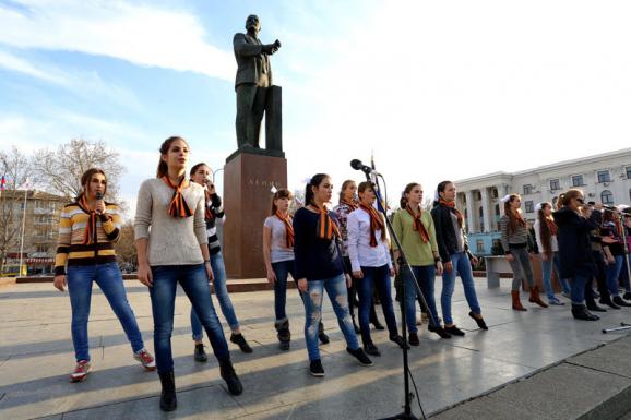 В окупованому Сімферополі на святі – «совєцька» ідилія: Ленін, піонери