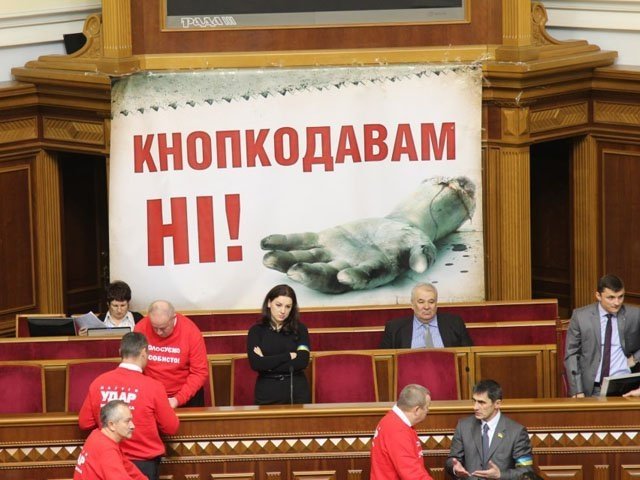 Верховна Рада не працює вже протягом декількох годин. Причиною цьому стало блокування президії ВР представниками фракції партій «УДАР», «Свобода» та «Батьківщина».