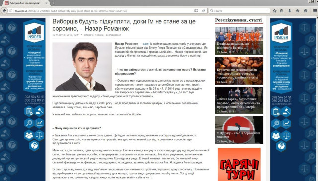 До слова, Назар Романюк, який заявляє про мільйонні тендерні оборудки і схеми у міськраді, і сам деякий час був пов'язаний з цією структурою. Адже працював на посаді радника міського голови Луцька Миколи Романюка.