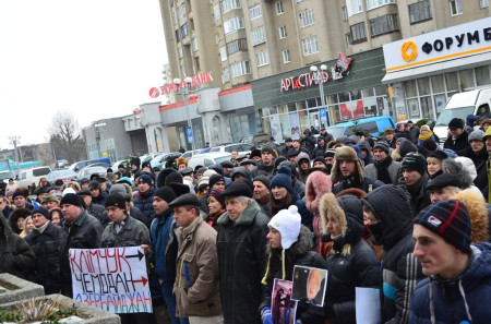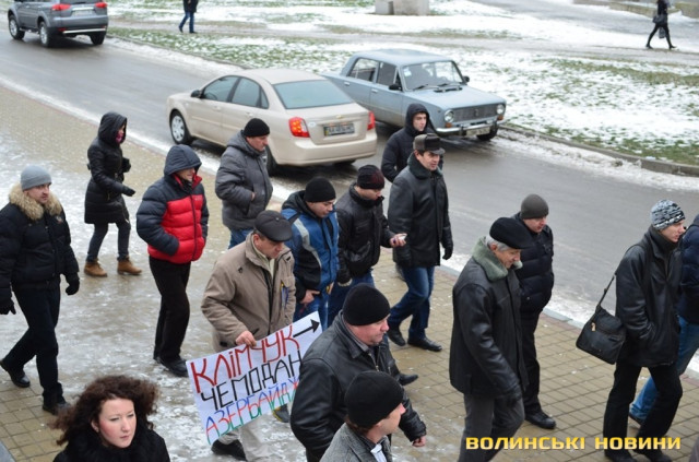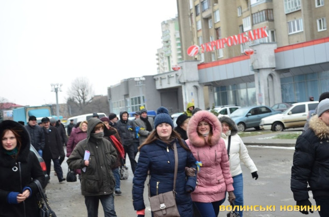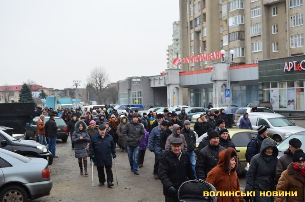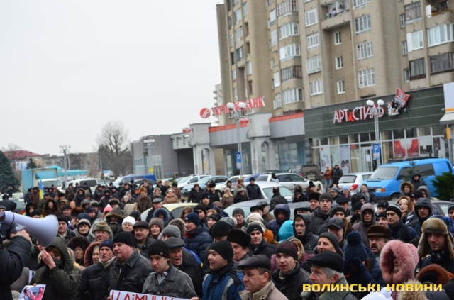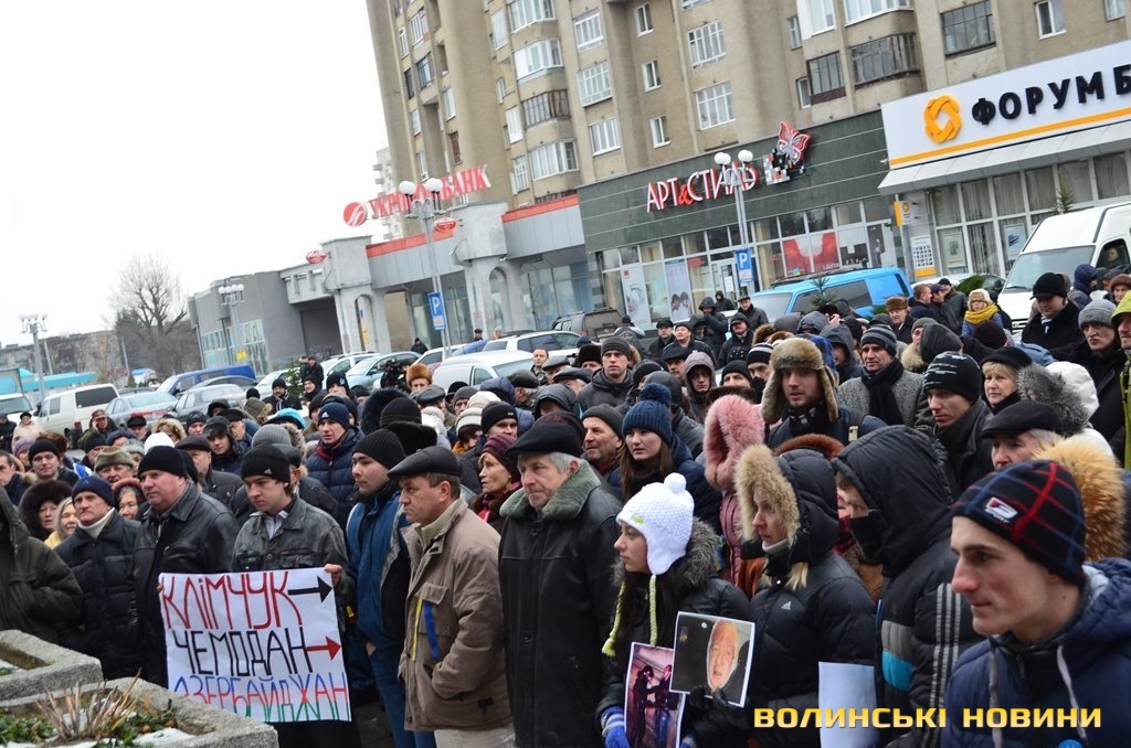Волинські опозиційні депутати разом з мітингувальниками пішли до приміщення приватного підприємства «Континіум» у Луцьку з вигуками «Ганьба!» та «Брехуни» - через те, що співвласники підприємства Ігор Єремєєв і Степан Івахів, які є нардепами від Волині, не проголосували за відставку діючого уряду.