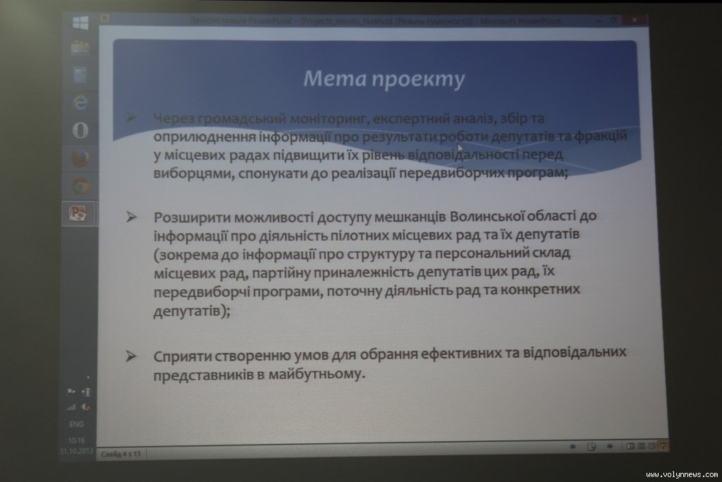 Як повідомили експерти «Центру політичного аналізу та виборчого консалтингу», учасниками проекту стали вісім органів місцевого самоврядування – Волинська обласна, Луцька, Ківерцівська, Володимир-Волинська та Ковельська міські, Турійська, Луцька та Ратнівська районні ради.