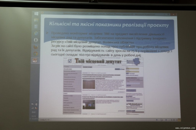 Йшлося також про вдосконалення веб-сайтів місцевих рад. Так, раніше зі звітами депутатів можна було ознайомитися лише на сайті «Твій місцевий депутат», а в 2013 році три місцеві ради-учасники проекту створили на власних сторінках окремі рубрики присвячені звітам депутатів. Наразі на сайті Волинської облради опублікували звіти 11 депутатів, на сайті Луцької міської ради – 19 депутатів та одна фракція, на сайті Ківерцівської міської ради – 5 депутатів та одна фракція.