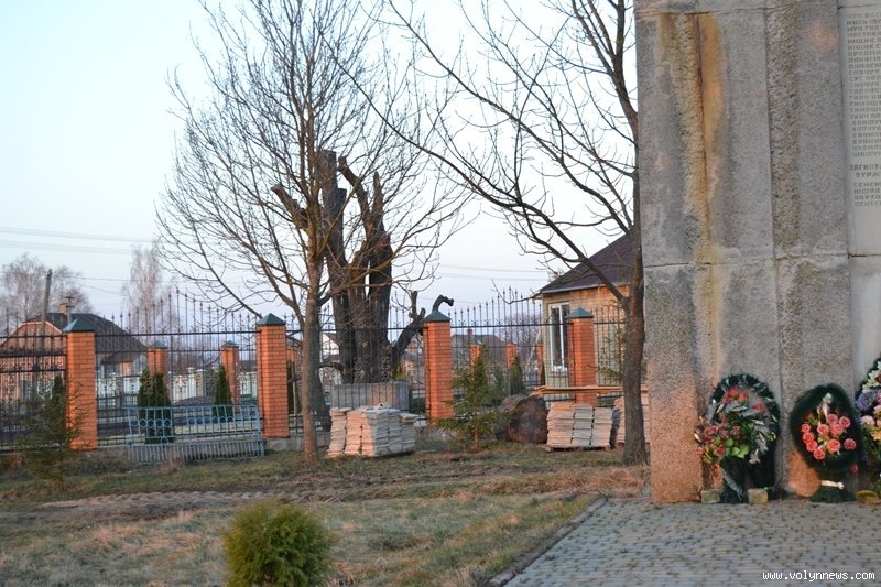 «Дійсно йдуть роботи. Але не на території памятки. Будується зал урочистих подій. І, як на мене, це потрібна справа. Адже, сьогодні усі події, як то весілля, хрестини, день народження чи поминальні обіди, люди роблять не вдома, а в закладах громадського харчування. Тому, для нашого села таке приміщення необхідне. Щодо забруднення території Стели - якраз навпаки. Варто звернути увагу на саму будівлю. Задньою стіною вона якраз закриває доступ і відвідувачам «Вечірньогого Києва» і відвідувачам майбутнього залу урочистих подій до памятки. Окрім того, не варто забувати, що під Стелою немає похованнь. Інакше я б в жодному випадку не дозволив будь-яке будівництво. А так усі лише виграють. І для людей користь і біля Стели територія буде окультурена» - зазначив Володимир Ніщик.