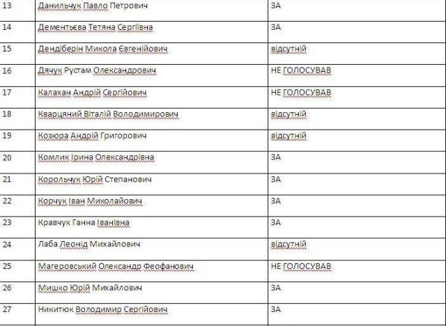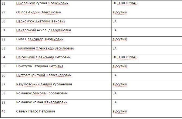 Цікаво інше - хоч я абсолютно не підтримую тих зрадників народу, які голосували "за", але в них була позиція, інші ж взагалі усунулись від цього питання, навіть ті які закликали не голосувати "за", окім Шиби (йому дякую за стійку позицію).