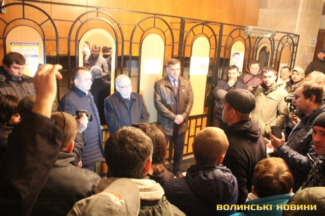 Нагадаємо, 13 березня сили СБУ та спецпідрозділ КОРД захопили редут торгівельної блокади на станції Кривий Торець. У зв’язку із затриманням та побиттям учасників, у Волинську облдержадміністрацію близько 19:00 почали сходитися люди. Активісти висунули свої вимоги.
